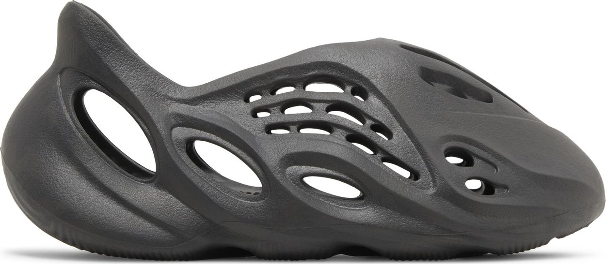 The adidas Yeezy Foam Runner ‘Onyx’ applies a sleek monochrome finish to the futuristic slip-on. Black injected EVA foam is utilized on the molded one-piece upper, featuring sculpted lines and a series of strategically mapped vents that allow for increased airflow. A contoured heel provides a secure fit, while the soft top layer of the footbed delivers step-in comfort. The lightweight build is underpinned by a wavy-traction outsole that offers sure footing on wet or dry surfaces.